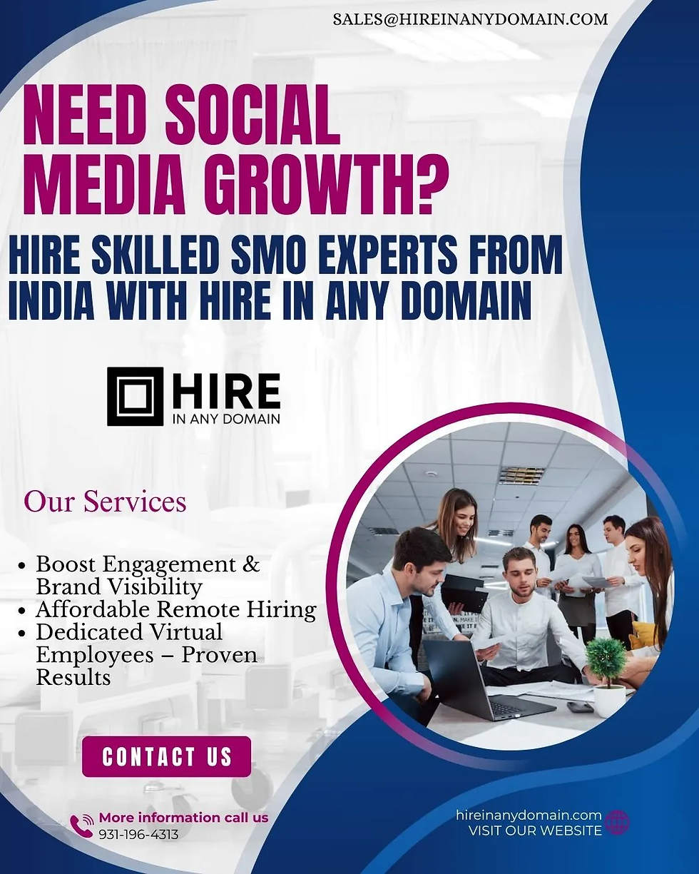 Need faster and effective social media growth? Hire skilled SMO Experts from India with Hire in Any Domain to boost your brand’s online presence. Our dedicated social media optimization professionals help increase engagement, grow followers, and drive conversions across platforms. Whether you’re a startup or an established business, our affordable and reliable SMO solutions are tailored to meet your digital marketing needs. Expand your reach and build your brand with expert virtual employees from India today!